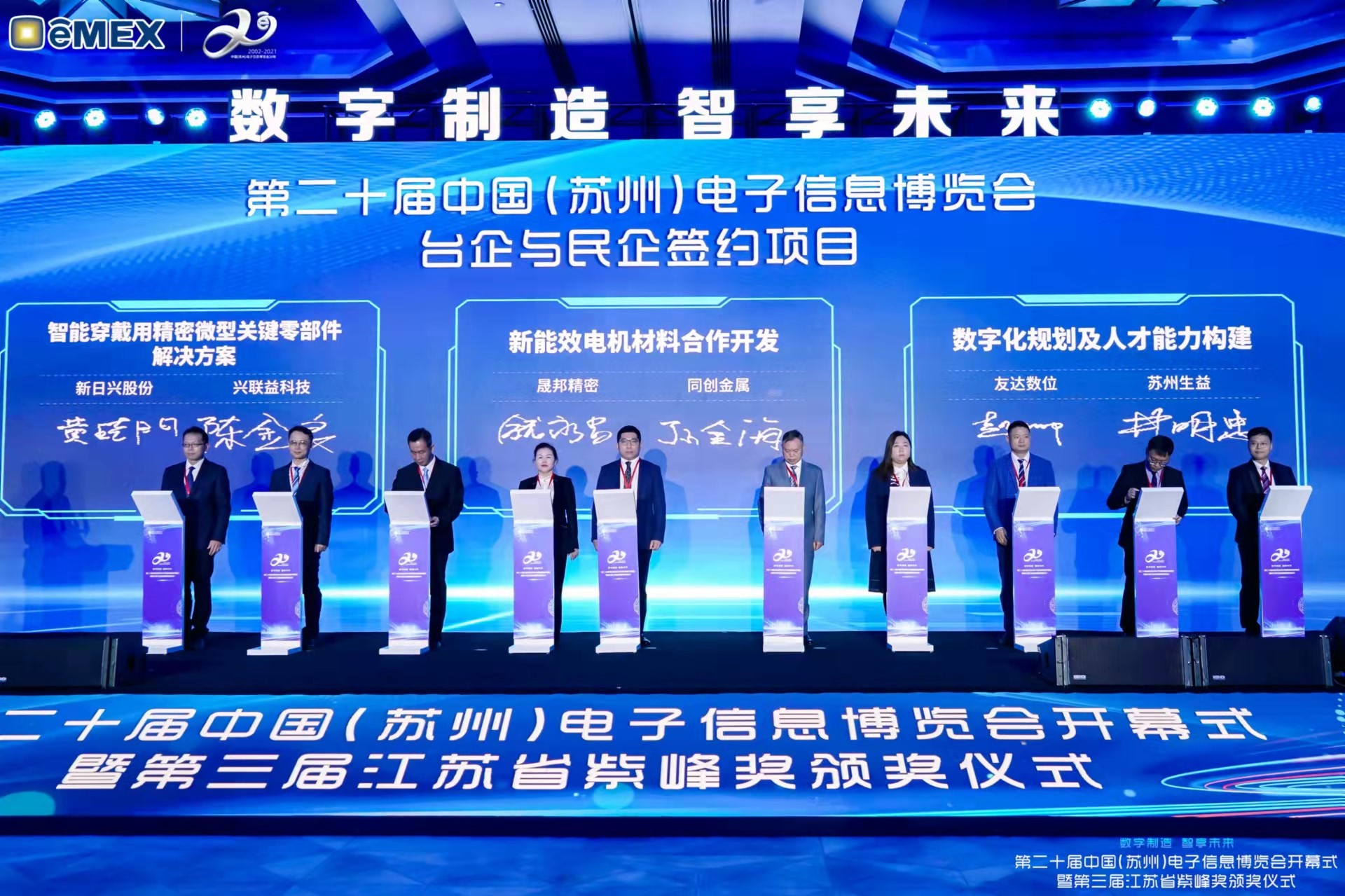 YY易游m6米乐再获紫峰奖殊荣 电博会开幕式当天也是第三届江苏省紫峰奖颁奖仪式,省台办、工信厅、商务厅、苏州市相关领导均出席并颁奖。该奖项为表彰对江苏高质量发展做出积极贡献的在苏企业,由江苏省政府专门设立。YY易游m6米乐光电 (苏州) 总经理郭振明代表上台领奖,这也是YY易游m6米乐苏州连续三次蝉联紫峰奖 “出口贸易领军企业奖”。YY易游m6米乐数位总经理赵丽娜女士,也参与本次开幕式,上台为本地化赋能签署战略合作协议,将优质服务资源集合、下沉到更多细分行业,为更多地区的制造企业提供数字化转型服务。 |