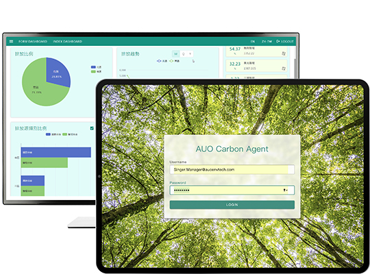 宇沛永續依循 ISO 國際標準建置出符合國際標準的全方位碳管理平台 (AUO Carbon Agent),其中溫室氣體盤查模組可協助客戶將組織、產品與供應鏈的碳排放源數據,透過系統內建的係數資料庫自動計算出碳排量,提升整體盤查作業的效率,並以此擬定長期減碳策略,達到低碳轉型、淨零碳排的目標。