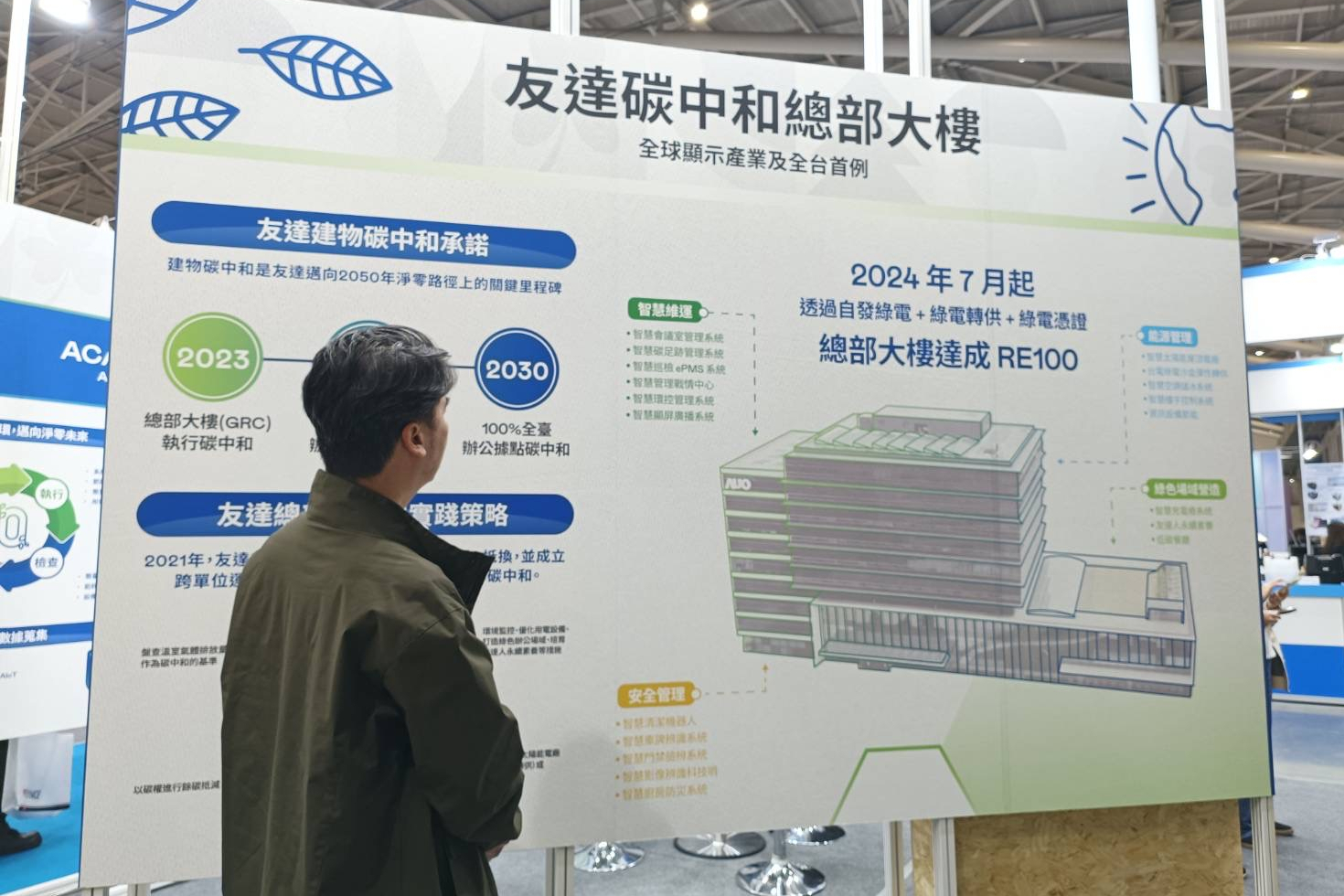 友達於「淨零碳排與新能源」專區,以「Beyond ESG, Partnering for Green Solution」為主軸,展現「碳中和建物解決方案」與「減塑行動」兩大亮點,體現友達串聯內外價值鏈,以務實的綠績效開創綠商機之集團願景。